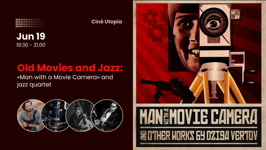 Man with a Movie Camera” (1929) is a masterpiece of world’s documentaries and silent movies, filmed by Dziga Vertov in Ukraine. What makes the experience even more special is the accompaniment of jazz quarter with soundtrack composed by Vitaliy Tkachuk explicitly for this movie and performed by Vitaliy himself and Luxembourgish musicians.
